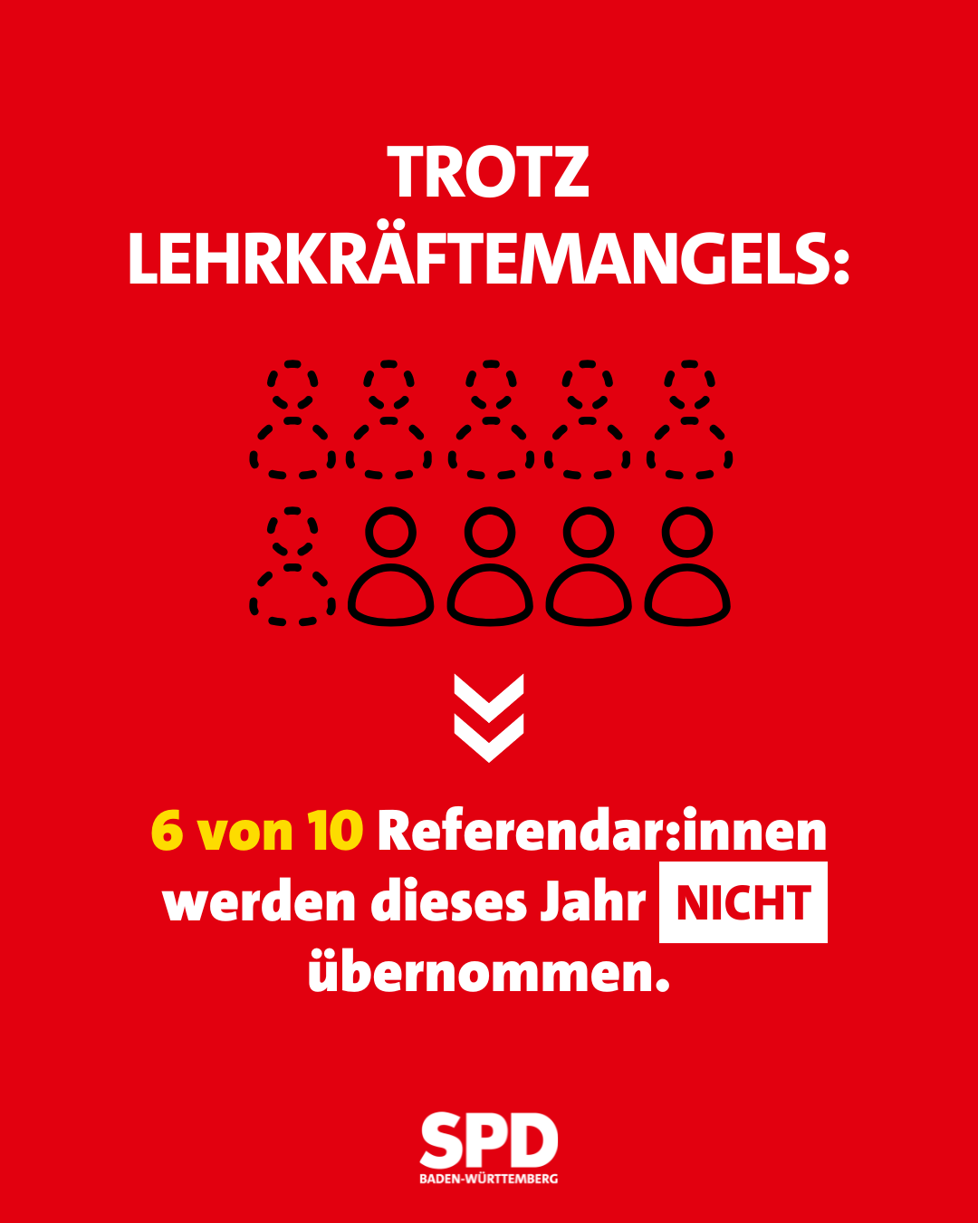 Wir von der SPD fordern schon lange eine Unterrichtsgarantie für Baden-Württemberg. Wir brauchen jede einzelne Lehrkraft in unseren Klassenzimmern. Wo wir sie einsetzen können? Beispielsweise zur Aufstockung der Krankheitsvertretungsreserve, zur Ausweitung der Vertiefungsstunden im G8 zur Teilung von Klassen in Hauptfächern wie Mathe oder Englisch. Auch zur Entlastung der Lehrkräfte in den aktuellen G8-Jahrgängen können wir auf keine einzelne angehende Lehrkraft verzichten.